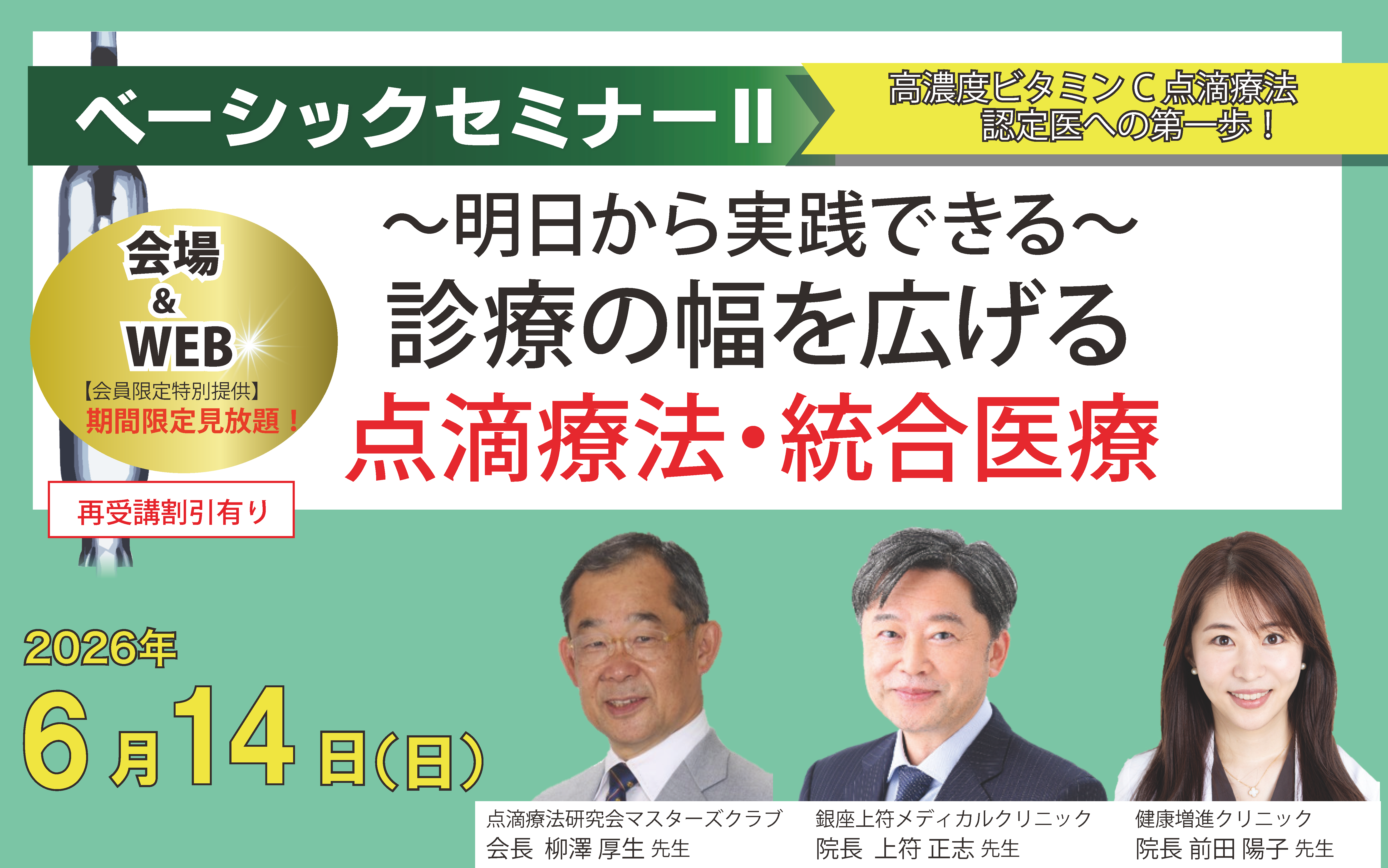 6/14-ベーシック・セミナーⅡ ~明日から実践できる~診療の幅を広げる点滴療法・統合医療