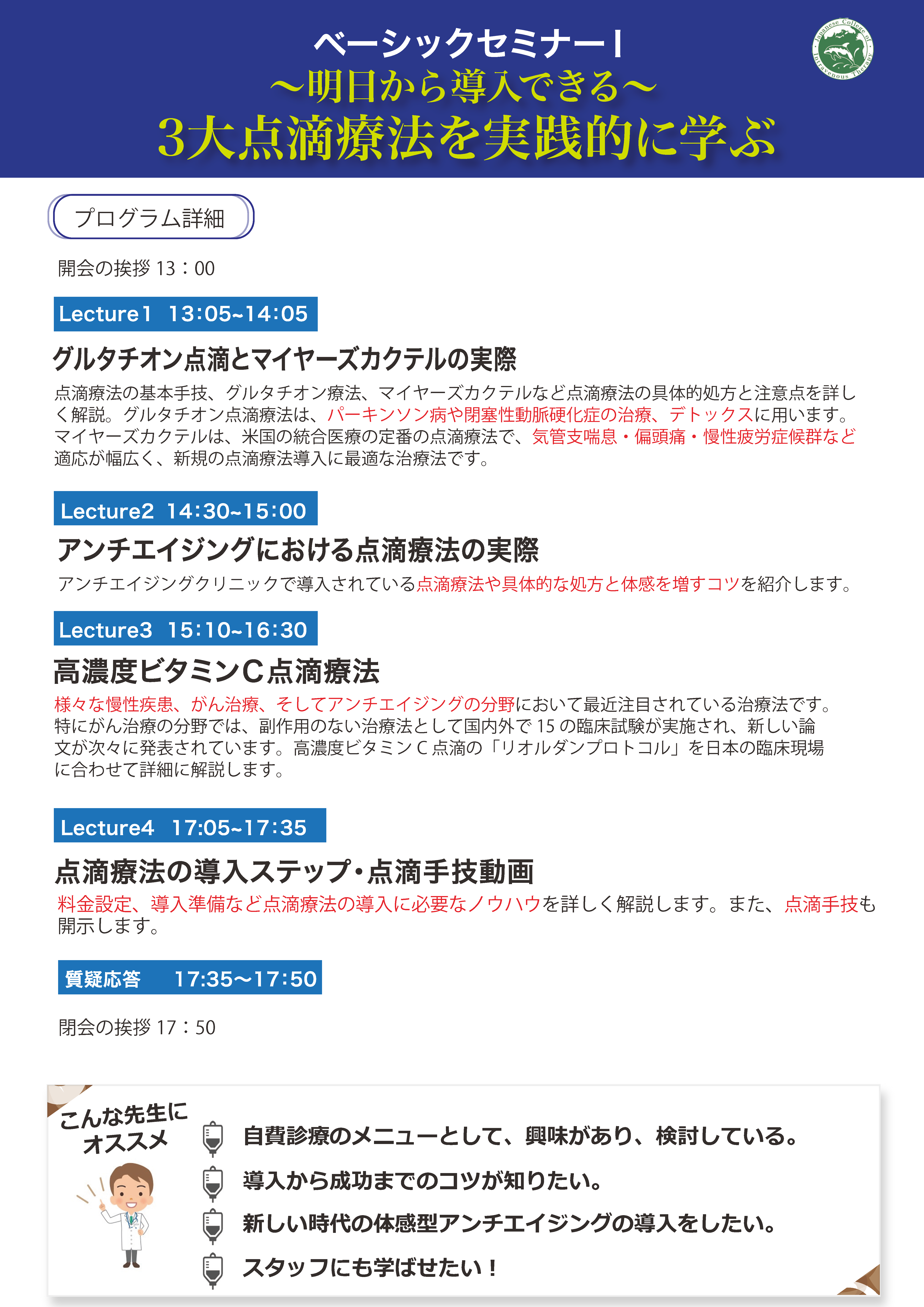 ●セミナー受講は医師・歯科医師・獣医師・コメディカル(同伴者)の方のみとさせていただきます。
